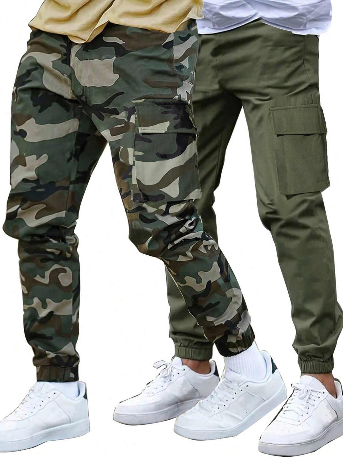 SHEIN 2 piezas/Set Pantalones largos informales de niños/preadolescentes con estampado de camuflaje y de un solo color con bolsillo y cordón, adecuados para la escuela, el jardín, la playa, el cumpleaños, la primavera, el verano, el otoño y el invierno